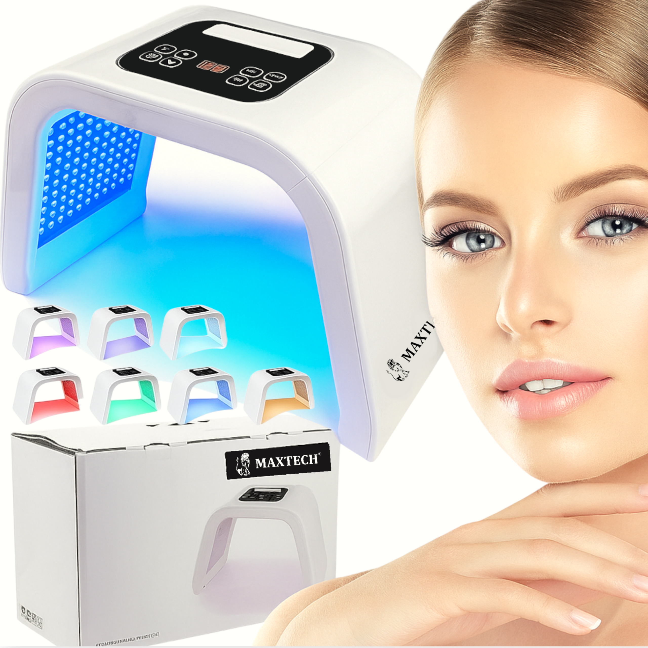 Maska LED na twarz i szyję koloroterapia światłem fotonowym 8w1 MAX-169