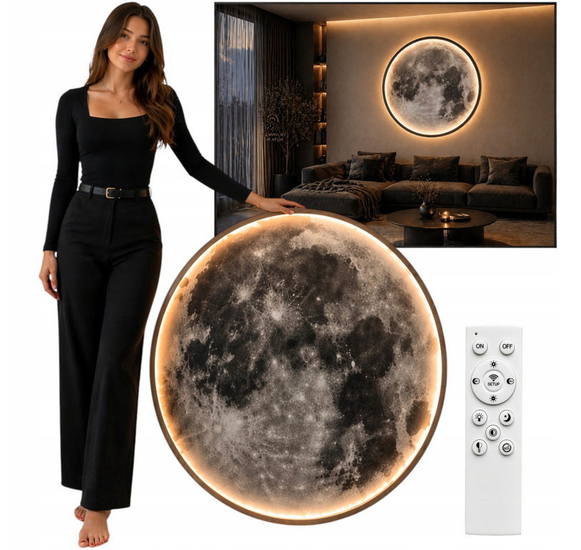 Duża lampa LED KSIĘŻYC - MOON aż 90 cm to wyjątkowe połączenie nowoczesnego designu i funkcjonalności.
